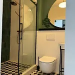 Furnished with a work desk, Urban Penthouse Free Parking I Rowery Apartment is equipped with a TV, ironing facilities, and conveniences like climate control. A bathroom has a separate toilet and a shower, as well as hair dryers and bath sheets.